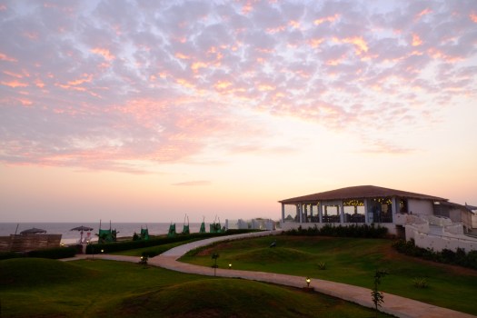 Next Image Dunes Restaurant at Serena Beach Resort Dunes at dusk… Dunes, a vegetarian multi-cuisine restaurant at Serena Beach Resort, Mandvi, located near Bhuj in Kutch, Gujarat (India).