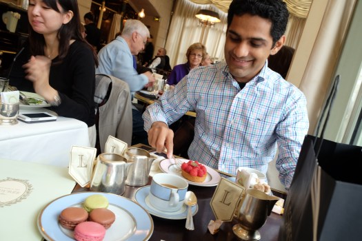 Previous Image Next Image DSCF8429 Indulging in coffee and pastries at Ladurée Raspberry tart, macaroons and Hazelnut coffee at Ladurée