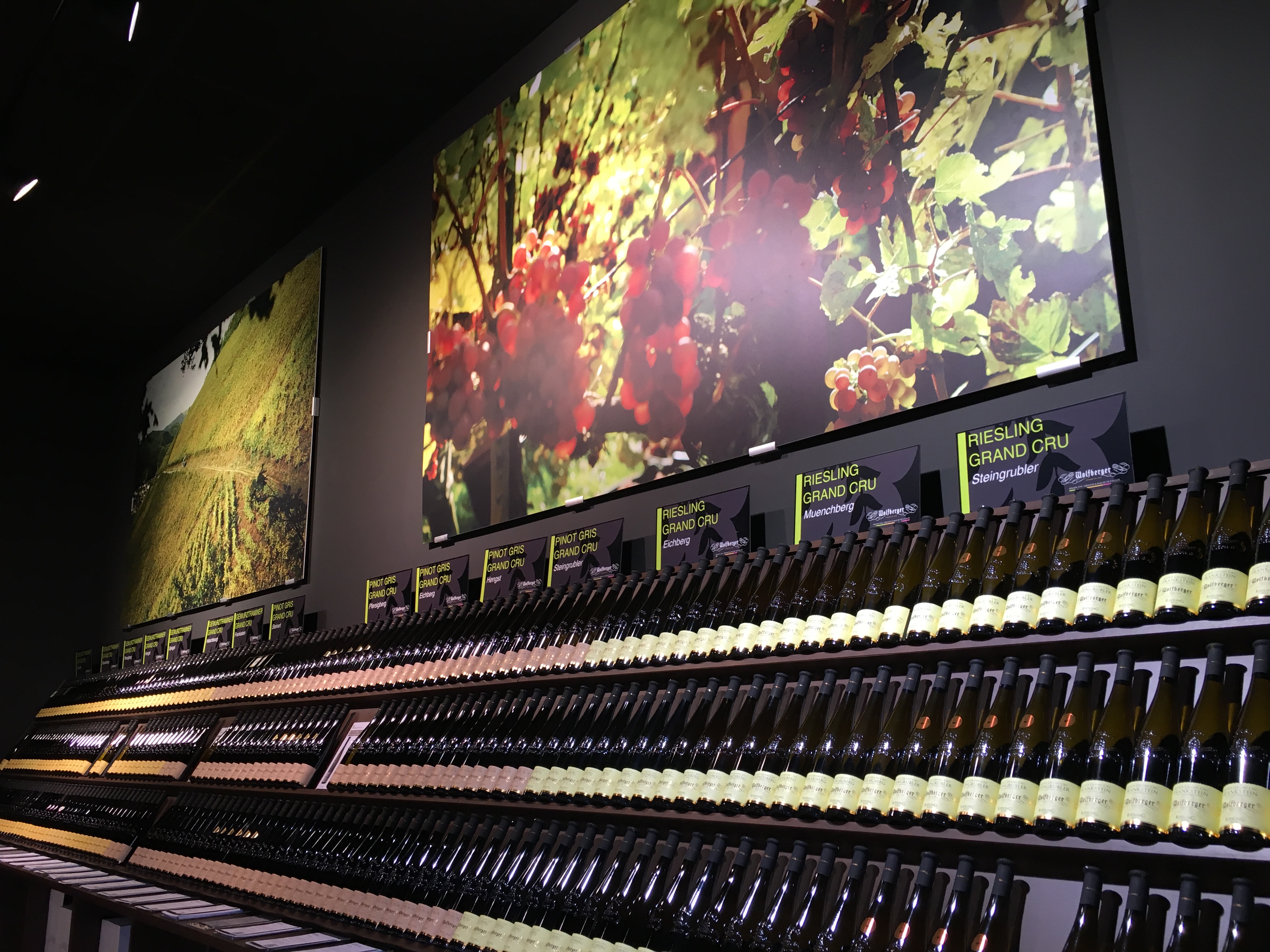 Previous Image Next Image Wolfberger Wines Pick your poison…or elixir… Wine bottles at the Wolfberger wine tasting room in Eguisheim, Alsace, France