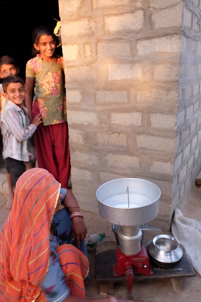 Previous Image Next Image Snapshot of a Bishnoi Village A Bishnoi woman churns butter as her brood looks on with amusement