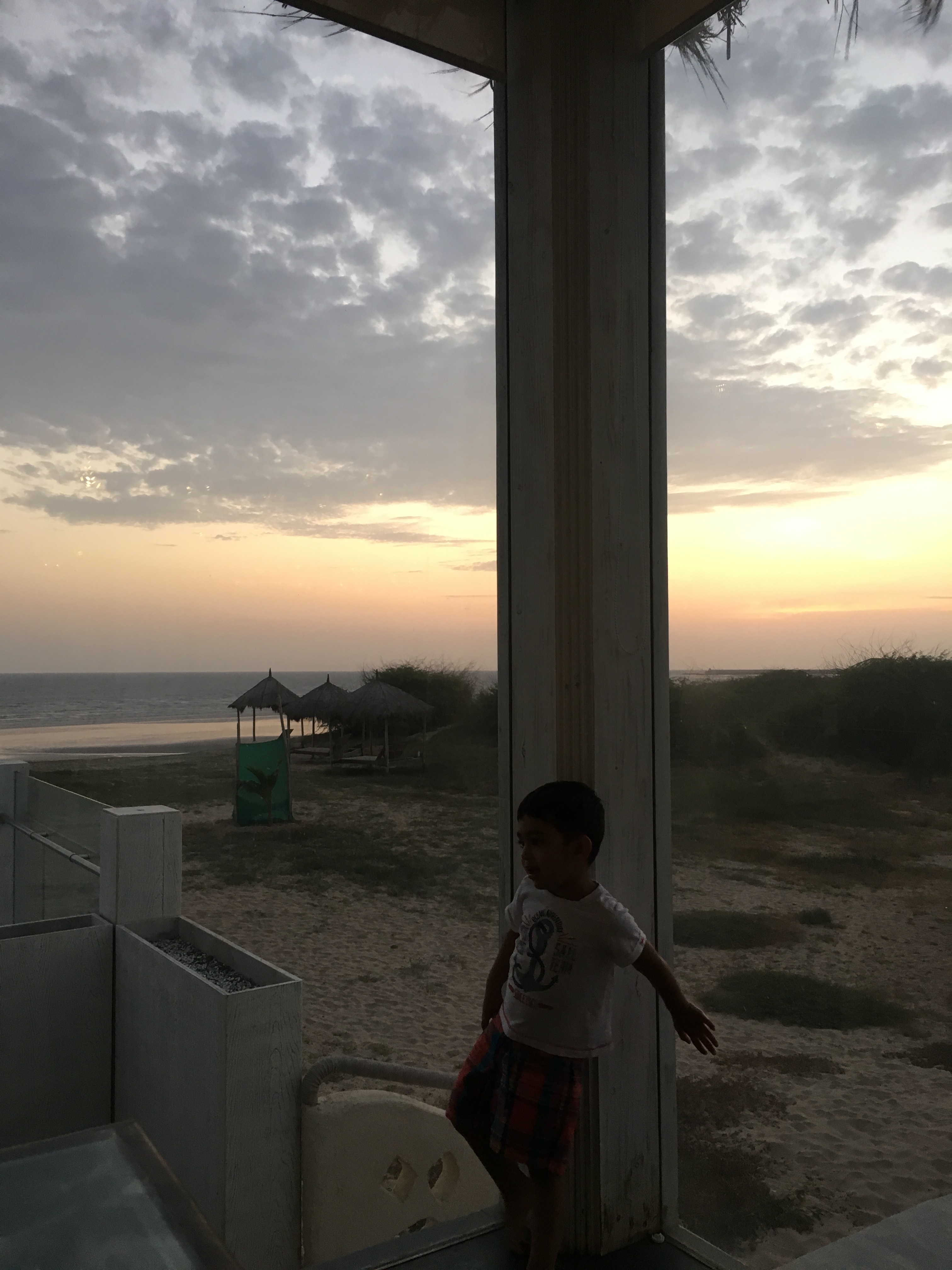 Previous Image Next Image View from Serena Beach Resort Restaurant – Mandvi Where sunsets meet set menus…or any menu you set… Beachfront view from Serena Beach Resort Restaurant in Mandvi, a town near Bhujin the Kutch region of Gujarat, India